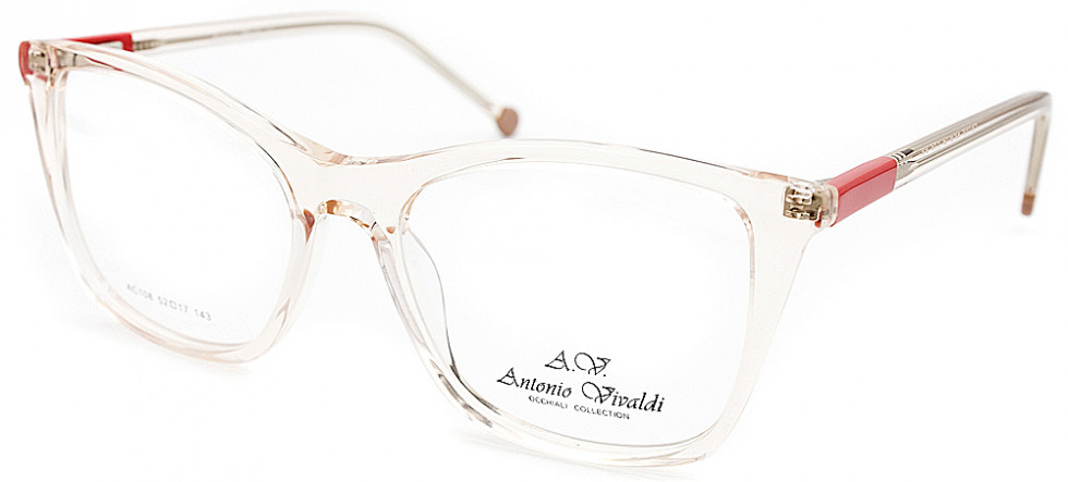 Женская оправа для очков ANTONIO VIVALDI 108 C1 воплощает стиль и элегантность, присущие бренду с узнаваемым именем, ассоциирующимся с высокой модой и качеством. Эта ободковая модель в прозрачной глянцевой пластиковой оправе имеет модную форму «бабочки», которая гармонично подчеркнет черты лица и подойдет для женщин, предпочитающих выразительный, но при этом нежный образ. Средние размеры оправы с шириной линзы 52 мм и длиной дужки 143 мм делают её удобной для большинства типов лиц, обеспечивая комфорт при носке. Благодаря универсальному размеру и классическому дизайну, данная оправа отлично подходит для установки мультифокальных линз, включая прогрессивные и разгрузочные варианты, что делает её идеальным выбором для активных и стильных женщин, заботящихся о здоровье глаз. ANTONIO VIVALDI продолжает традиции изящества и высокого качества, предлагая оправы, которые объединяют моду и функциональность.